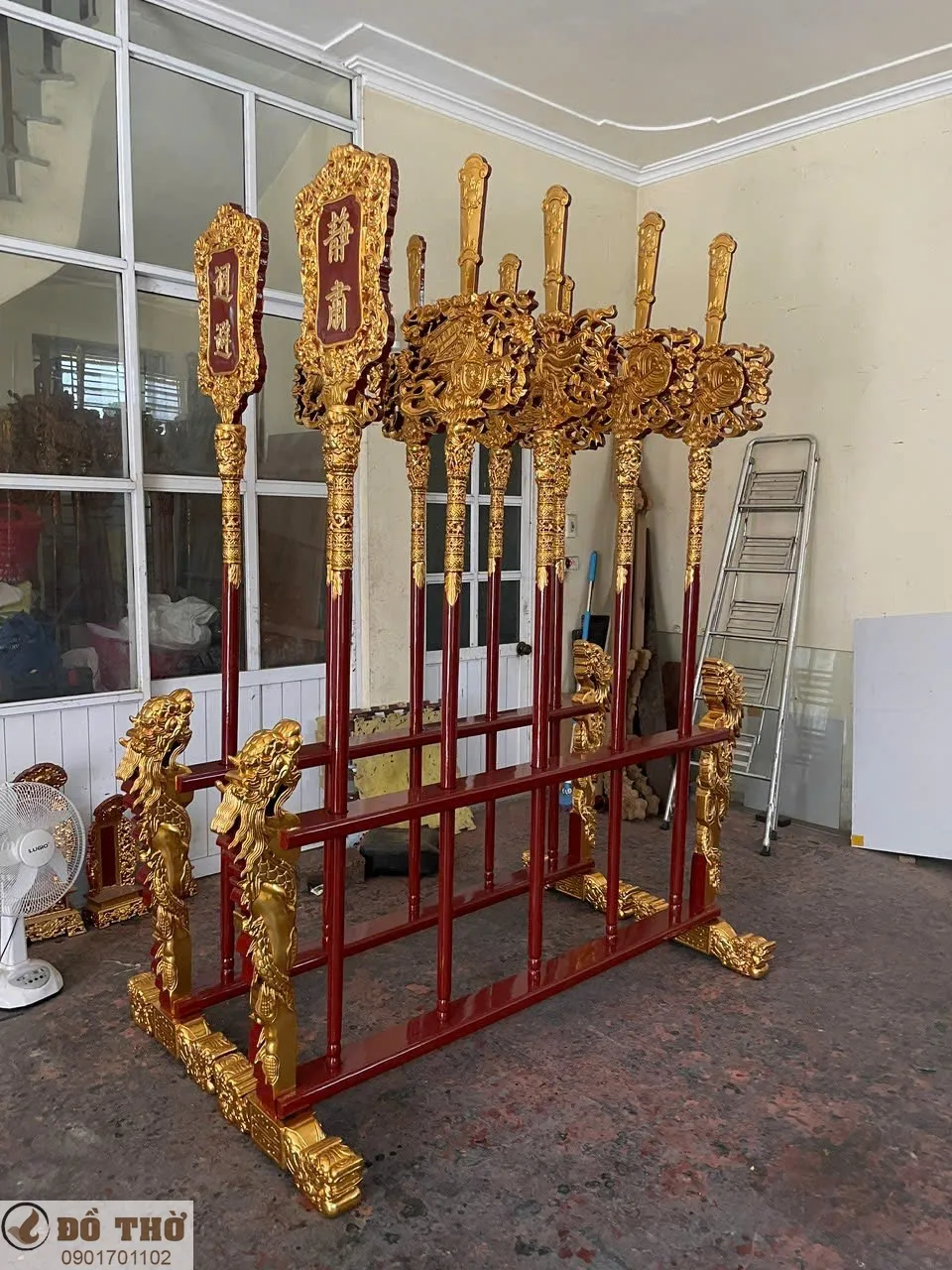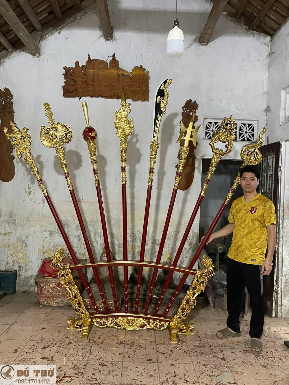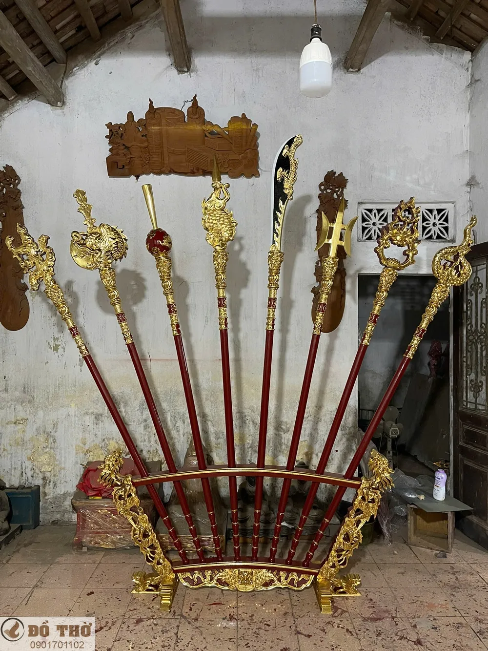 Bộ bát bửu bằng gỗ sơn son thếp vàng