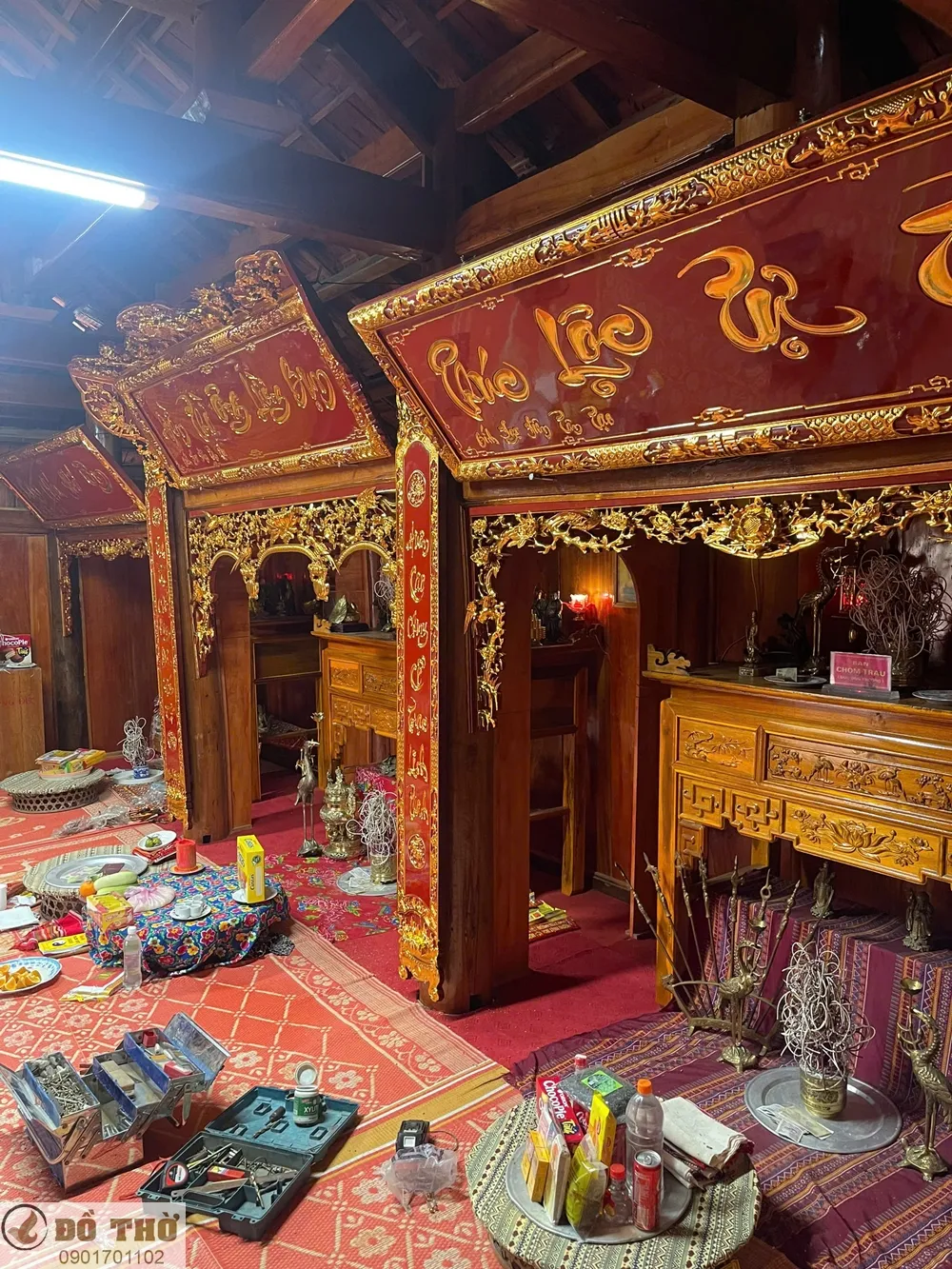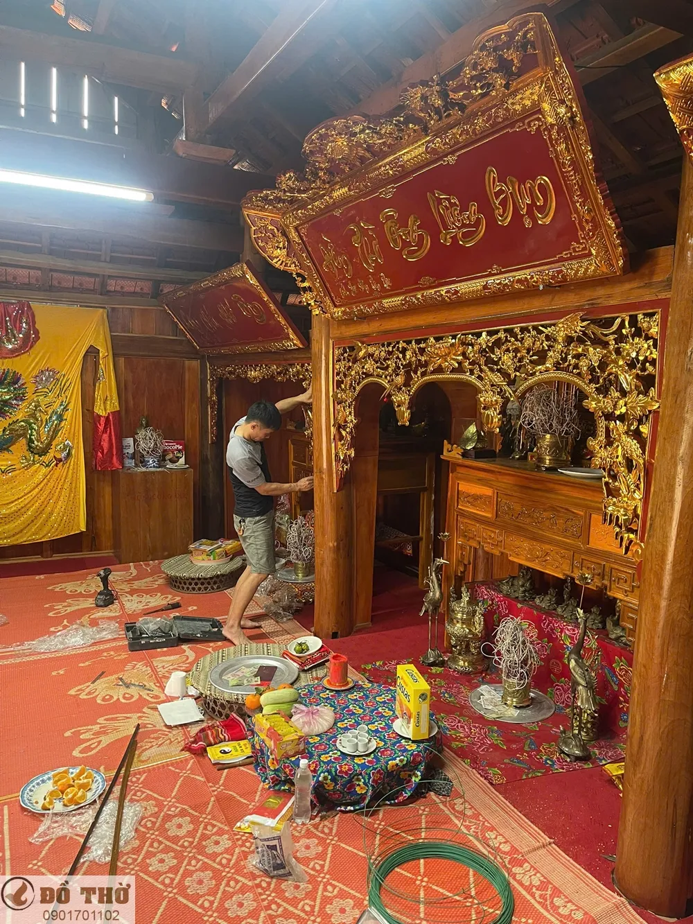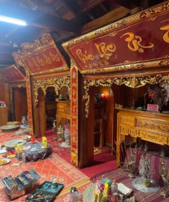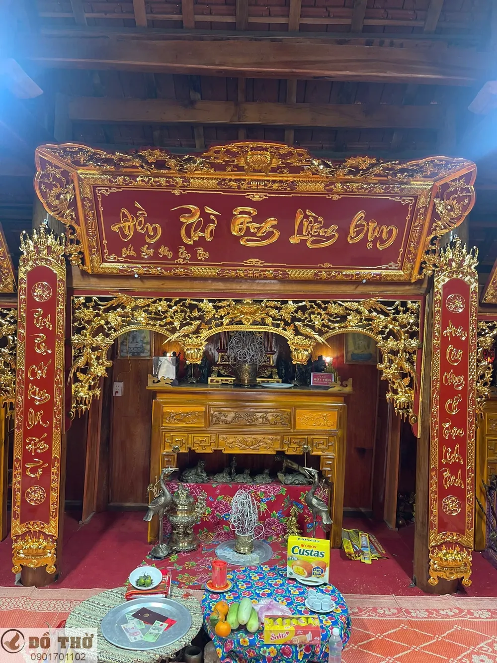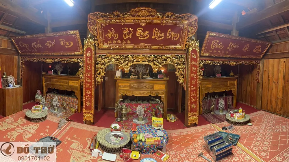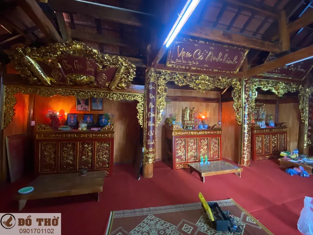 Bộ hoành phi câu đối, cửa võng thếp vàng